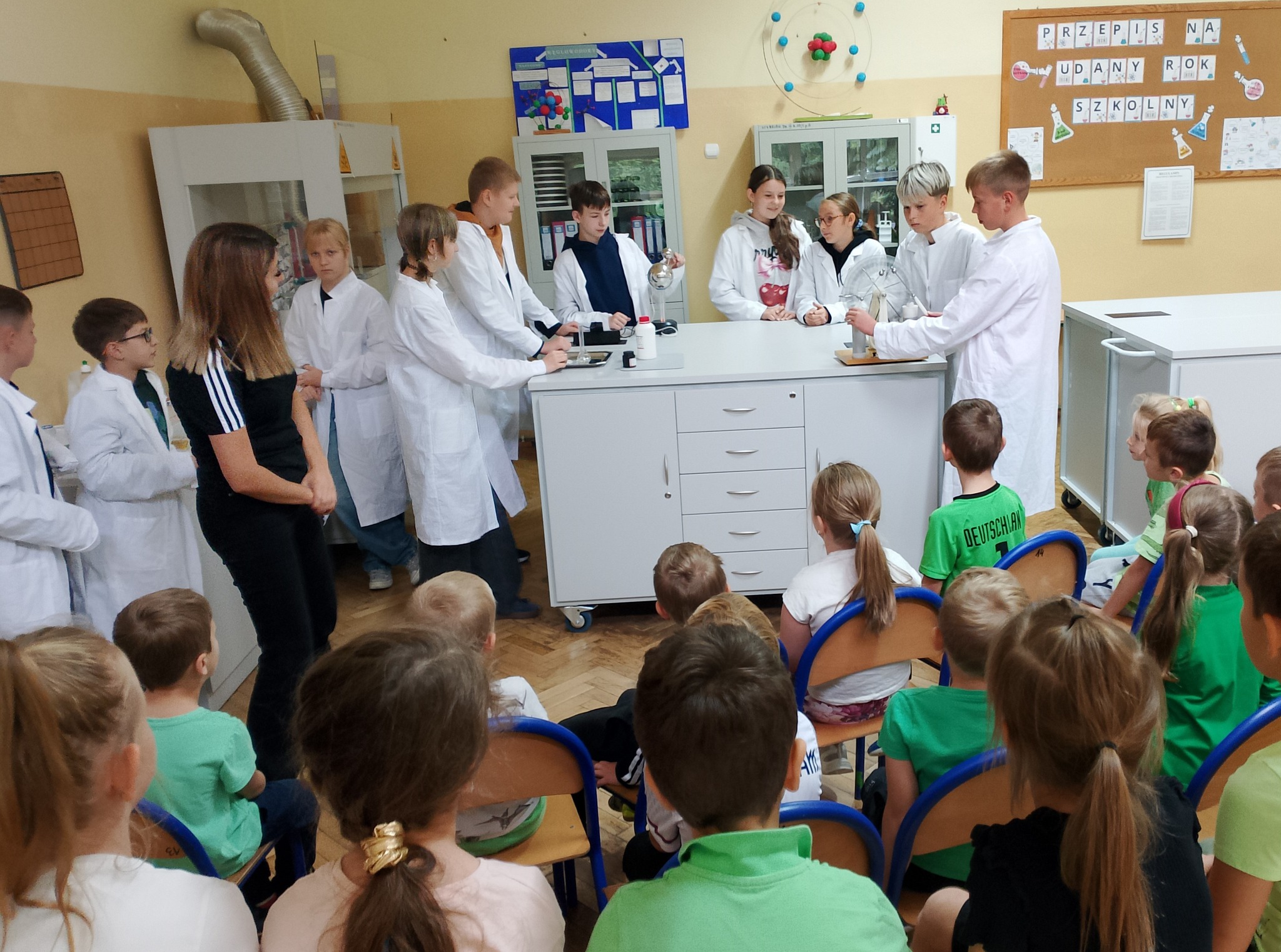 - W sali chemicznej zobaczyły ciekawe eksperymenty.