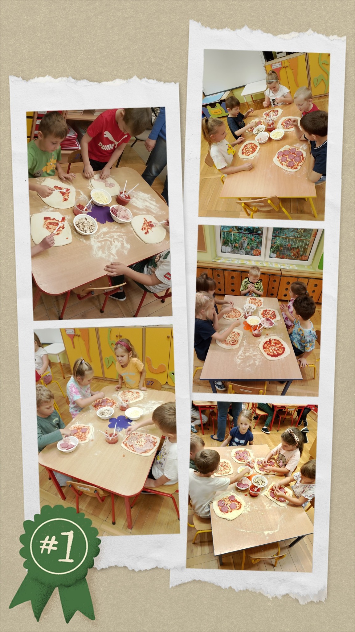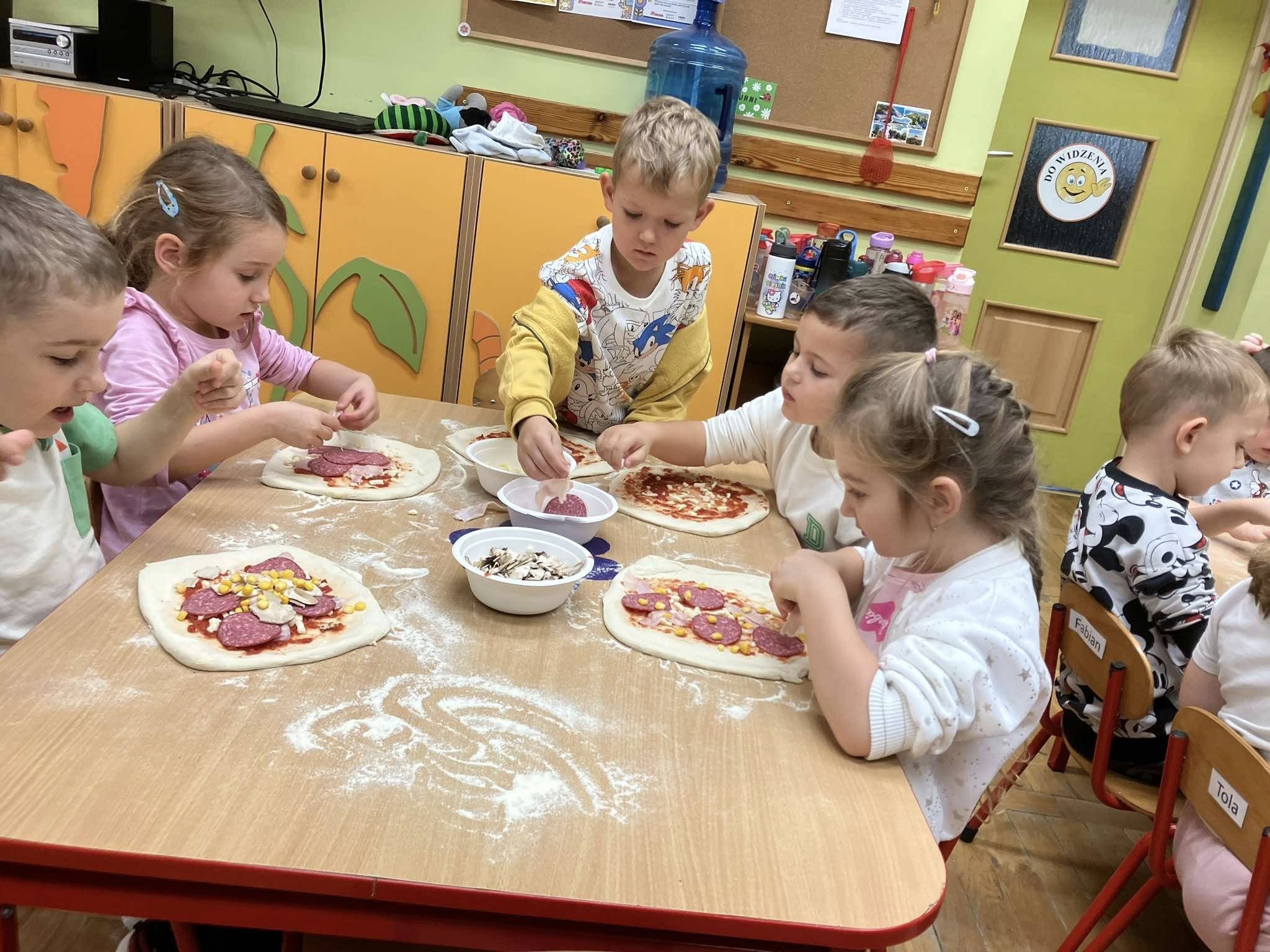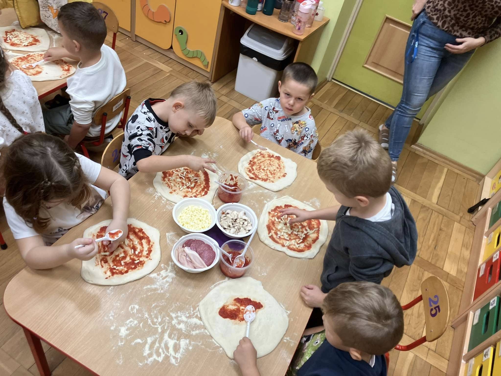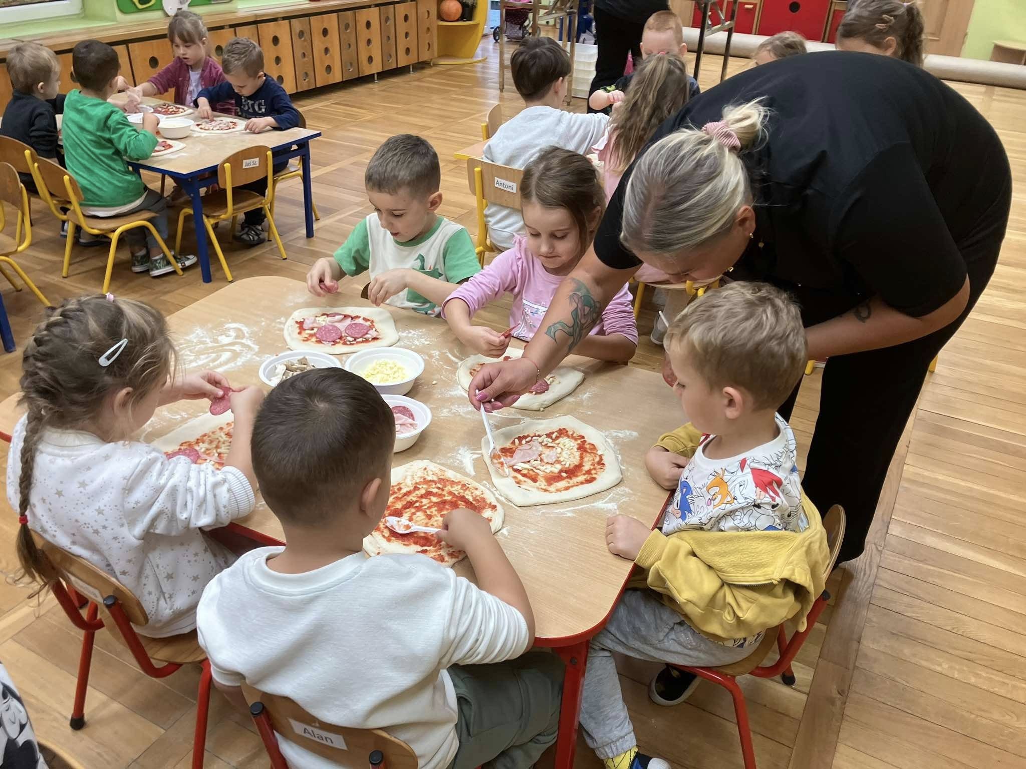 Dzisiaj w naszym przedszkolu odbyły się pyszne warsztaty robienia pizzy! Dzieci z wielkim zaangażowaniem gniotły ciasto, dobierały ulubione składniki i tworzyły własne, wyjątkowe mini pizzę. To była świetna zabawa połączona z nauką – rozwijaliśmy samodzielność, kreatywność i współpracę w grupie. Zapach świeżo upieczonej pizzy unosił się w całym przedszkolu – było smacznie, radośnie i bardzo wesoło!