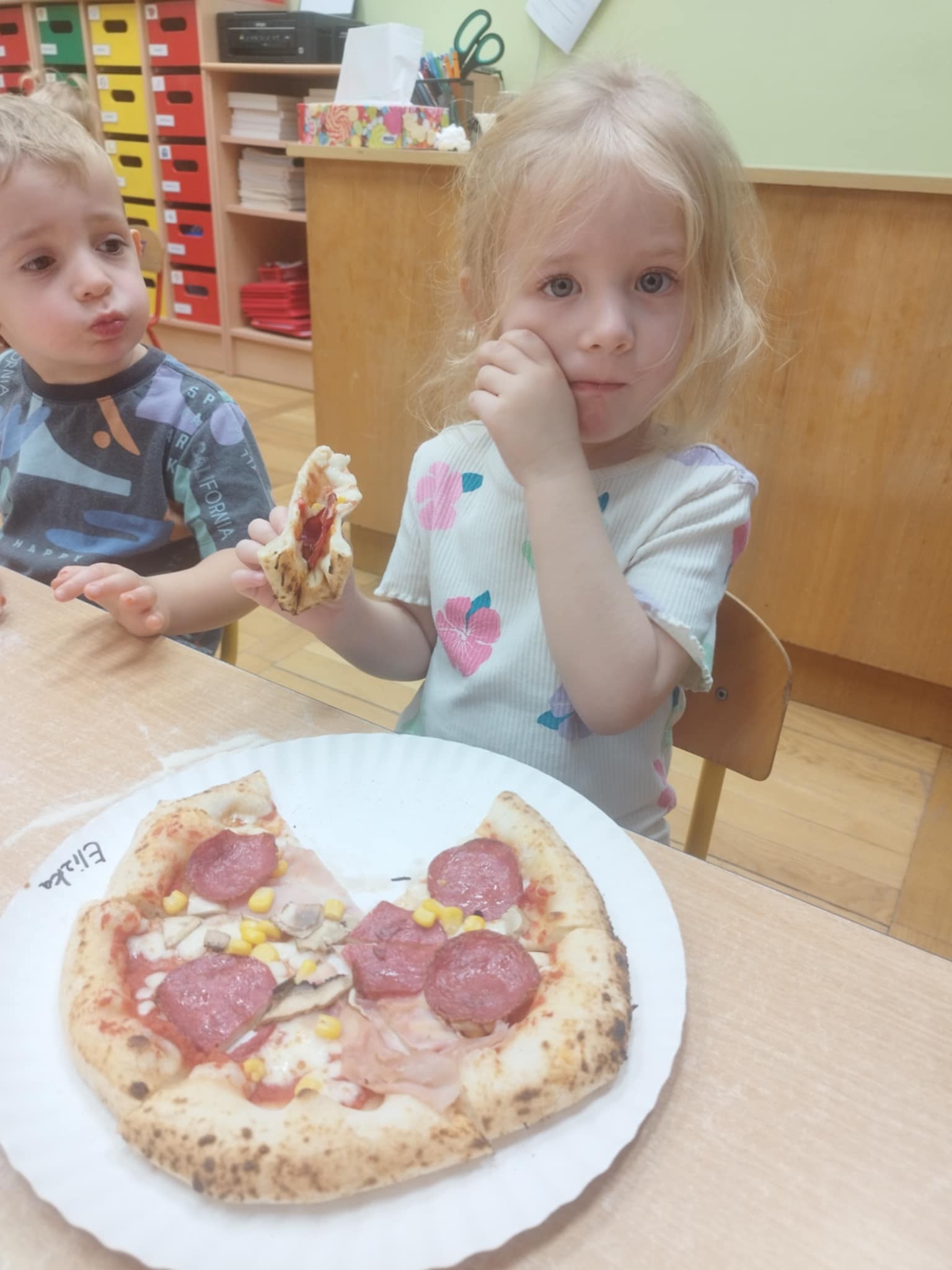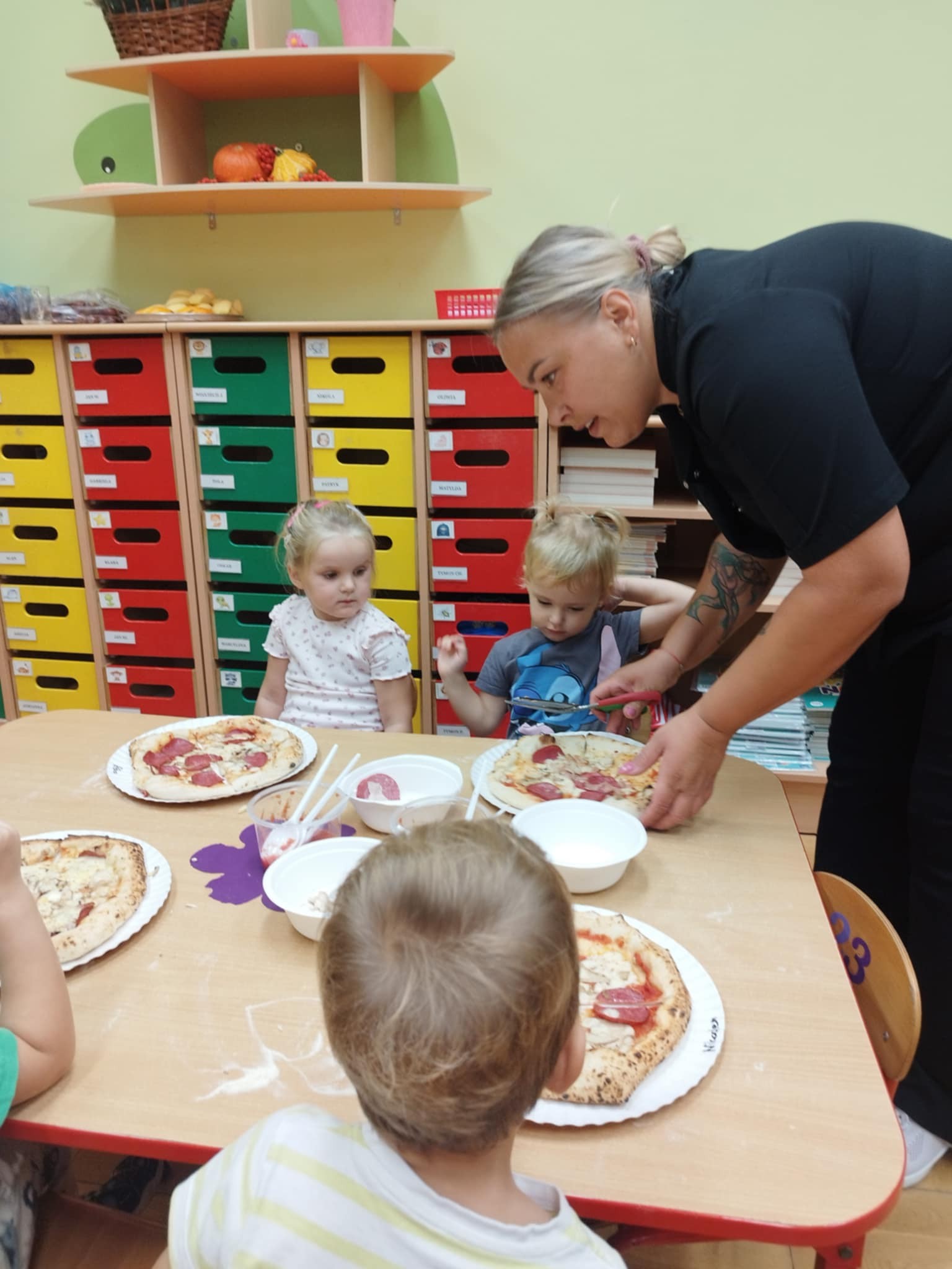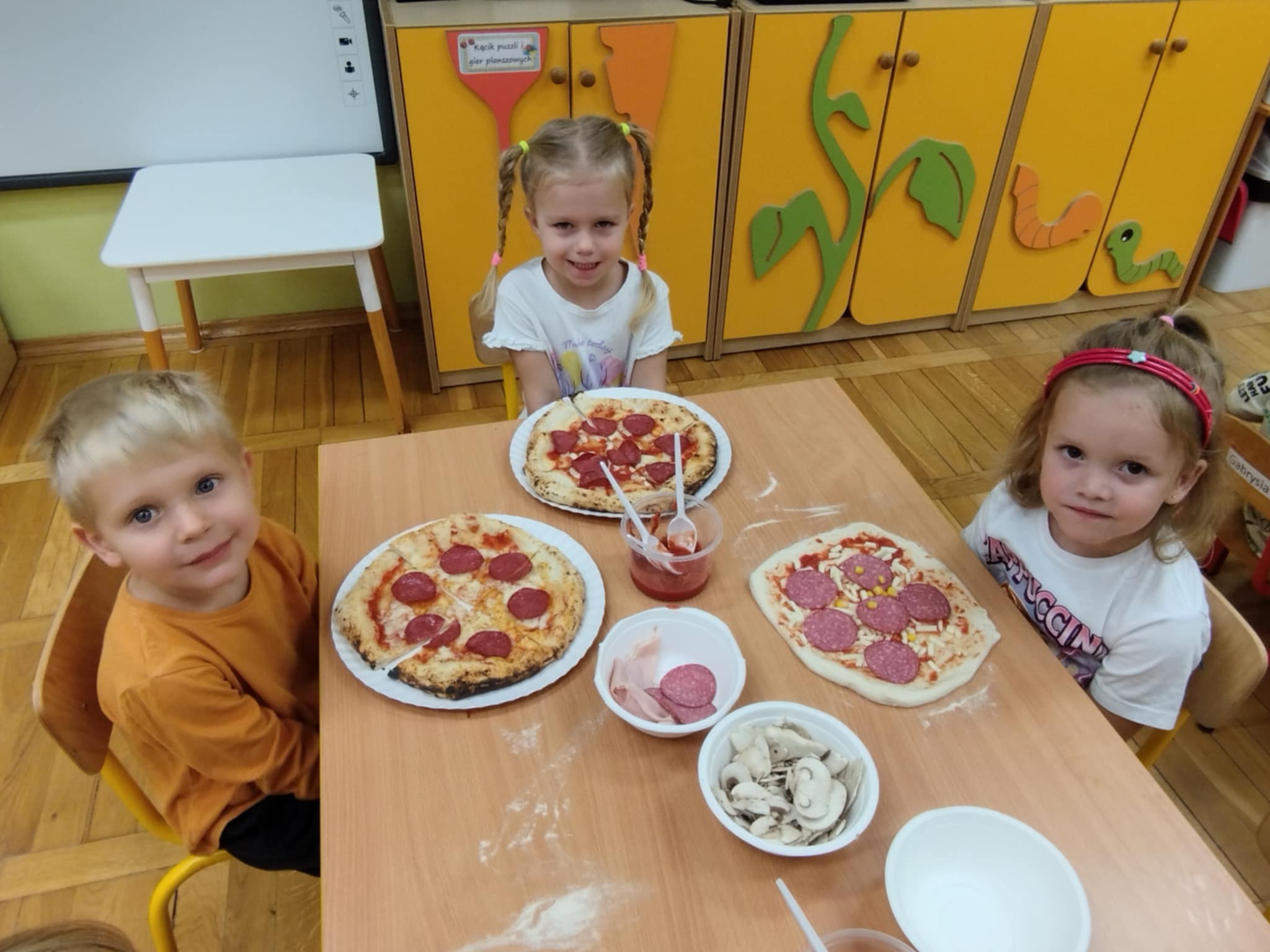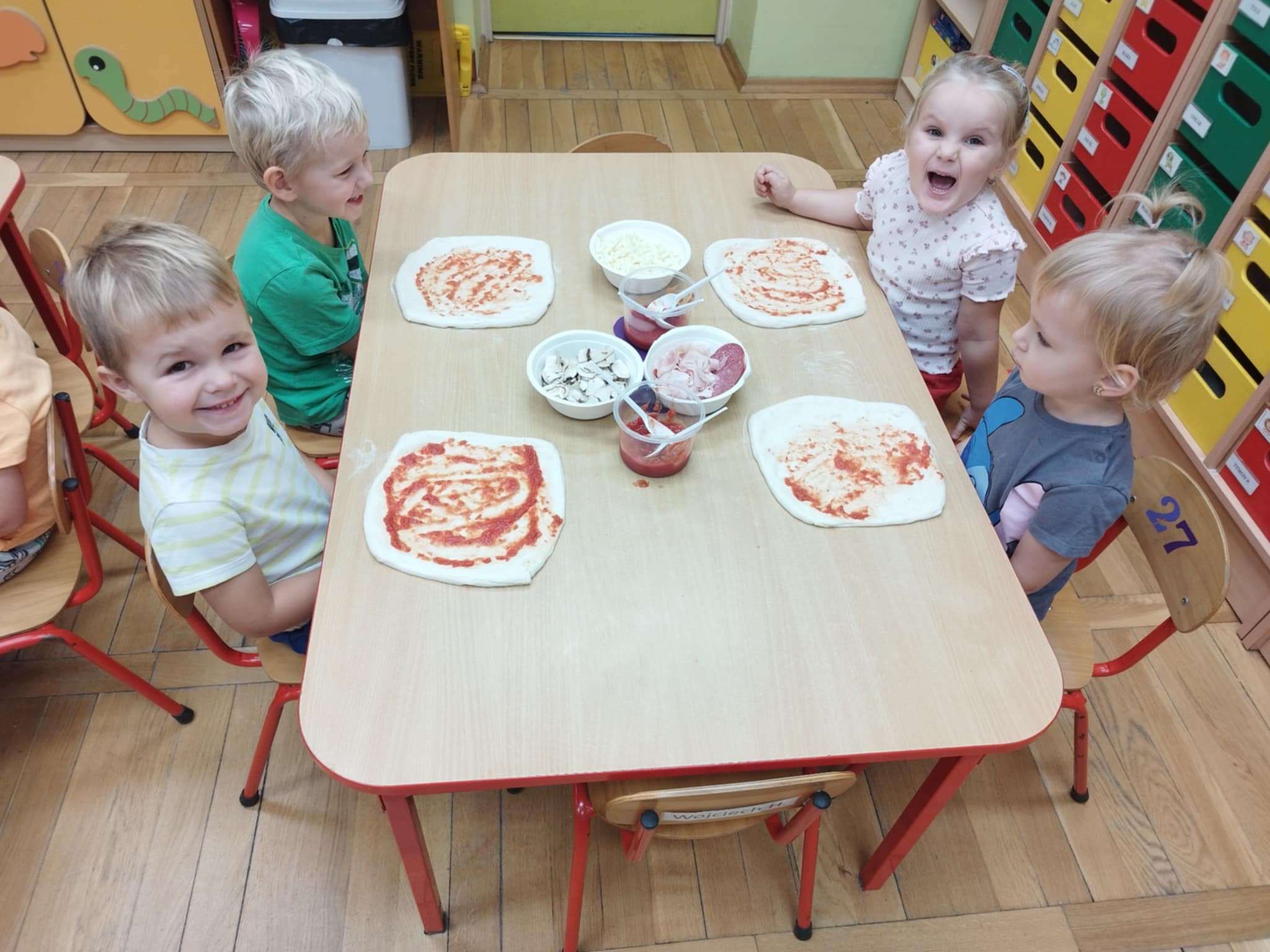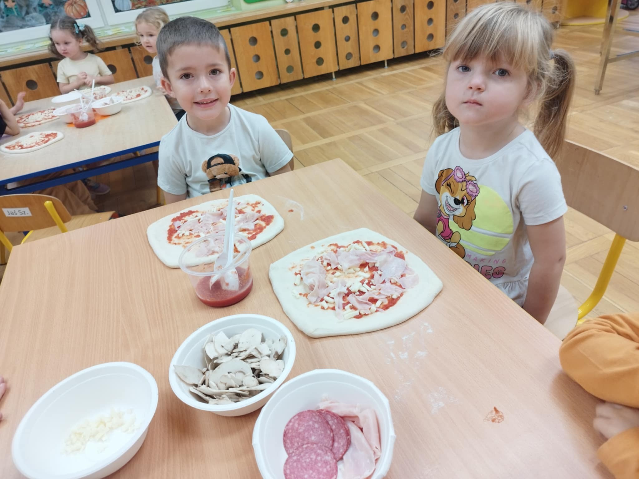 Dzisiaj w naszym przedszkolu odbyły się pyszne warsztaty robienia pizzy! Dzieci z wielkim zaangażowaniem gniotły ciasto, dobierały ulubione składniki i tworzyły własne, wyjątkowe mini pizzę. To była świetna zabawa połączona z nauką – rozwijaliśmy samodzielność, kreatywność i współpracę w grupie. Zapach świeżo upieczonej pizzy unosił się w całym przedszkolu – było smacznie, radośnie i bardzo wesoło!